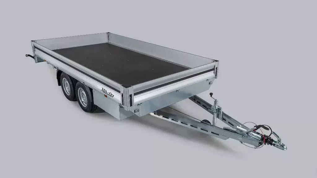 Lavakoko 205 x 400 x 30 cm. 2-akselinen jarrullinen 2700 kg, kumivääntöjousitus. Kaikki laidat aukeavat, pyörät lavan alla. Takuu 5 vuotta!