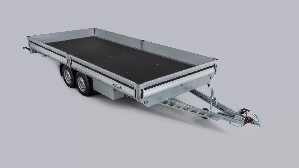 Lavakoko 235 x 550 x 30 cm. 2-akselinen jarrullinen 3500 kg, kumivääntöjousitus. Kaikki laidat aukeavat, pyörät lavan alla. Takuu 5 vuotta!